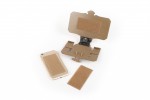 Smartfon mocowany jest w środku pokrowca za pomocą rzepa. Część pętelkowa została na stałe umieszczona na wewnętrznej ściance, natomiast przyszły użytkownik w komplecie otrzymuje fragment rzepa haczykowego z klejem, który umieszcza na telefonie.