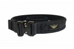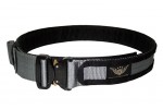 Pas składa się z dwóch części: pas wewnętrzny,który przeplatamy przez szlufki jak tradycyjny pas(kolor czarny) i pas zewnętrzny główny, który naklejamy za pomocą rzepa, łącząc w jedną całość.